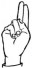 На ћирилици написано ПЕРИША КРЉАР састоји се из 11 слова [?]. Исписано ћириличном једноручном азбуком за глувонеме: